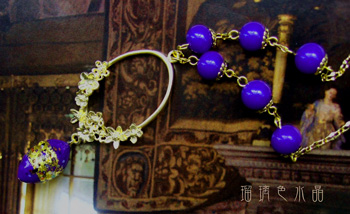 チェーンに入れたコバルトブルーのラウンドはミリアムハスケルのグラスビーズです。