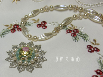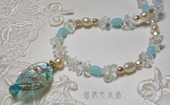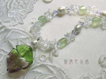 チェーン部分は水晶チップ、淡水パール、チェコ等を使って