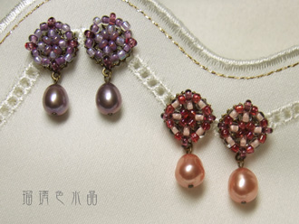 淡水パールのライスと薄いパープルのチェコビーズを使用しています。
