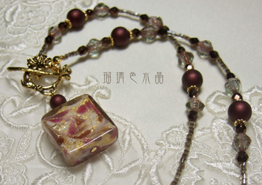 秋らしい葡萄色のヴェネチアンのスクウェアビーズを使って・・・