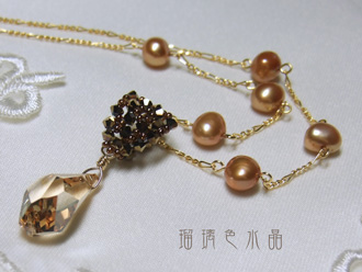 大粒のキャラメルブラウンの淡水パールを散らして・・・