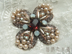 アンティークなお色のちりめんビーズ、スワロストーンやホワイトオパールの