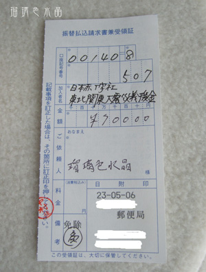 私の義援金として5000円上積みして、70000円を先ほど郵便局より