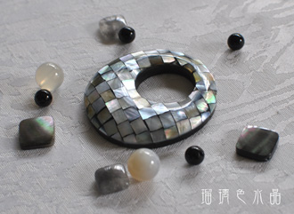 天然石は貼り合わせシェルパーツスクウェア、グレークラウディクォーツスクウェア、