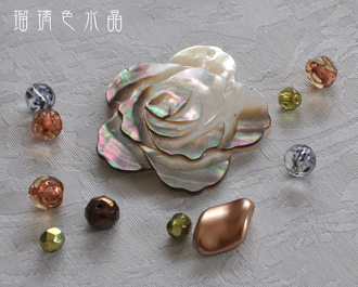 こちらは大きな薔薇彫りシェルのペンダントトップのセットです。