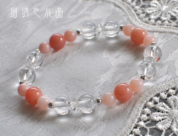 こちらは水晶ラウンド&ボタン、2色のピンクコモンオパールのブレスです。