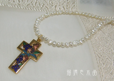 タイトルにもあるように、たいへん美しい七宝のクロスです。
