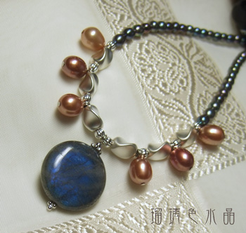 トップはひときわ鮮やかなラブラドレッセンスが見られるコインカットのラブラドライト。