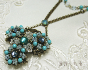 トップのパーツとその上のラインストーンにチェーンを付けるまで3時間掛かりました。