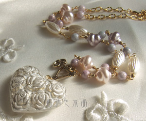 春らしい優しい色合いのネックレスに仕上がりました。