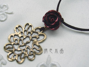 大きなメタルパーツに、大きな薔薇パーツを合わせた皮ひもネックレス・・・
