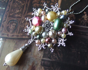 ハスケルパールのネックレスは、鮮やかなピンクのパールとウィーンから