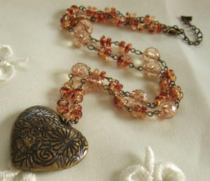 複雑なお花の彫りの入ったハートパーツをトップに下げたネックレス。