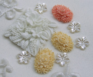 このクリーム色のカボション、私も見つけて買ってみたんですよ〜^0^