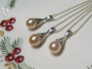 パールは専門店で一個一個選んできた淡水パールで、9~10mmの大粒です。