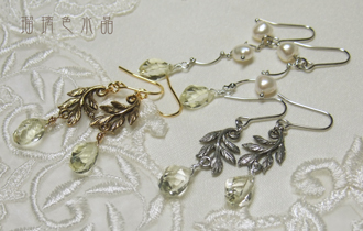 上品に淡水パールと合わせたものと、メタルパーツに下げたものを作ってみました。