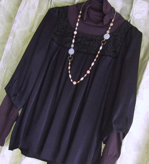 暗い色はアクセが映えるので、これ、イベントで着ようと思っているの。