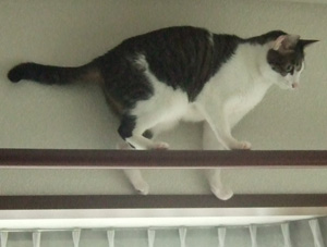 今でもベランダの手すり歩きしてるし。(たまに滑って落ちそうになってるけどね・・4歳の時に5Fのベランダからハトめがけてスーパーダイブして大ケガした猫ですが懲りてないみたいです。)