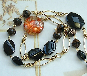 艶やかなカットのあるオニキス、スモーキークォーツ、チェコビーズの