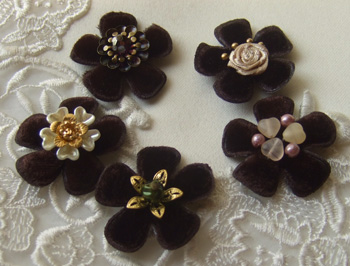 先日ご紹介したベロアのお花にトッピングを施してみました。