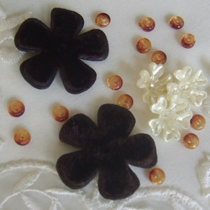 こげ茶のお花はベロアです。たぶん本当は服飾用だと思うのですが