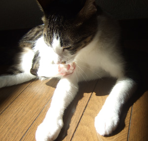 手も足もせっせと舐めてキレイにします。