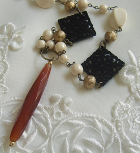 こちらのネックレス、樹脂の透かしパーツを白にするか黒にするか