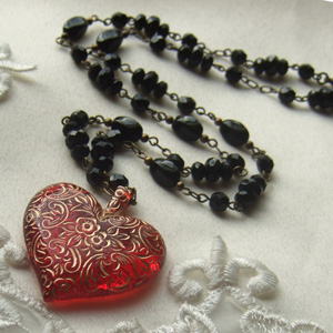 今日のネックレスも模様入りの赤いハートを黒でぐっとしめていて、