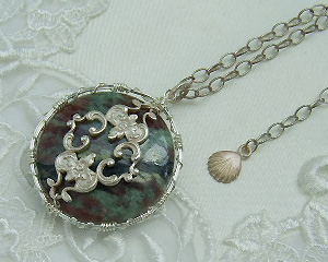古代銀の透かしパーツに合わせて、チェーンはシルバーカッパーをチョイス。
