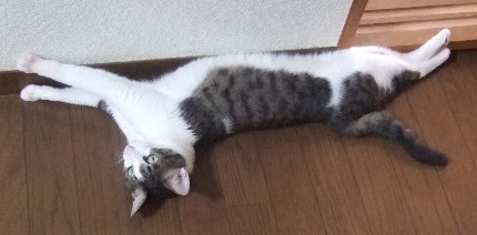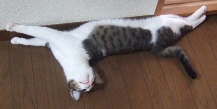 にゃんこちゃんて、暑いとこ〜んなに伸びるんですねー。