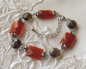 カットがいっぱいのカーネリアンとスモーキークオーツ、
