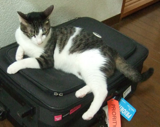 出張から帰ってきた夫のキャリーバッグが大のお気に入りで、