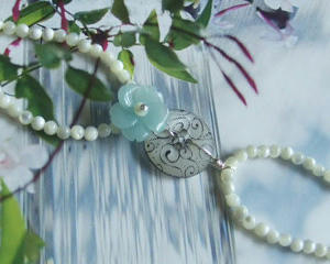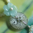 画像のブレスレット、ボタンとアマゾナイトのお花がとても綺麗ですし、