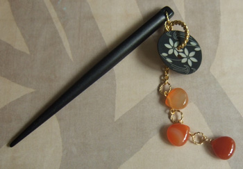 またまたボタンとカーネリアンのかんざしです。