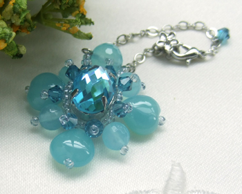 まず、シーブルーカルセドニーをふんだんに使ったバッグチャームです。