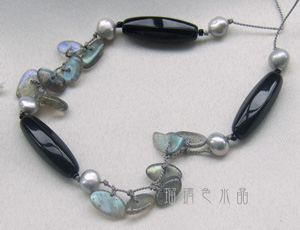 この石の美しさを生かすには・・・と考えた末、アクセサリー用シルク糸