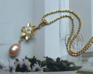 マットゴールドのお花の中心には小さな小さな淡水パールを留めつけて、