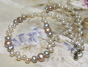 その後、今日は引き続き淡水パールのネックレスを作りました。