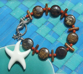 で、ナデシコさんにヒトデをほめられたので、ゆうべ早速ブレスを作ってみました。