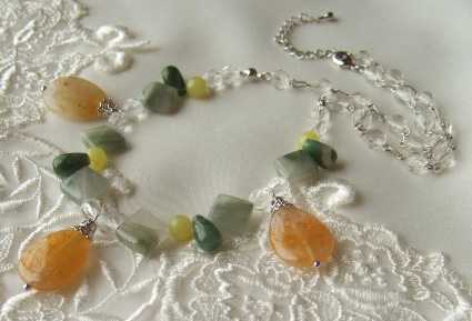 中国ヒスイとシトリン、シーウィードクォーツ、オリーブジェイド、