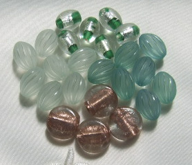グリーンの濃淡のビーズはマットで透明な筋が入っています。