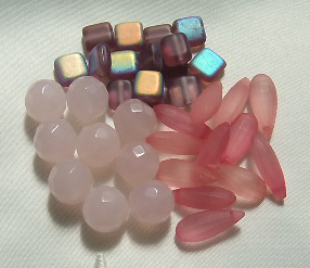 ローズクォーツのようにも見えるのは綺麗なピンクのガラスビーズ。