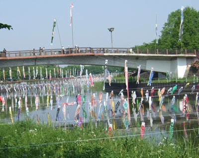 川面にはたくさんの鯉のぼりが泳いでいました。