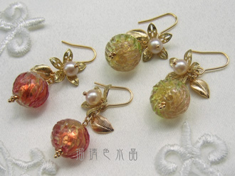 さて、昨夜コロンとしたヴェネチアンのお揃いピアスを作りました。