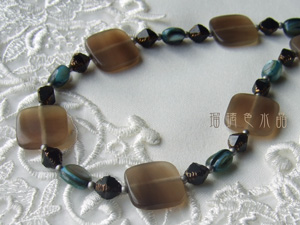 スクウェアのホーンとブルーに染めたシェルタンブルのネックレス。