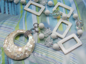 白い貼り合せシェルパーツのネックレスです。
