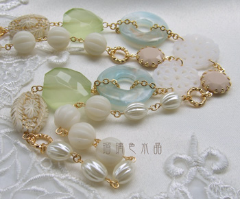 オフホワイトのメロンビーズが可愛らしさを添えて・・・