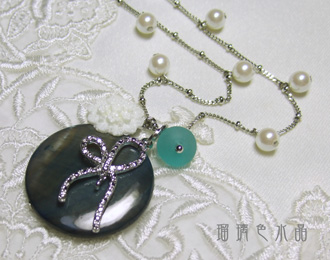 大人っぽいブルーグレーのシェルが手に入りましたので、キラキラするリボンパーツと