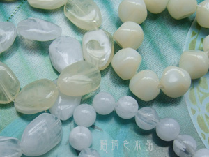 メインにはならないけれど、ロングネックレスにお役立ちの樹脂ビーズや、
