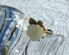 セラミック薔薇とパールのリングです
